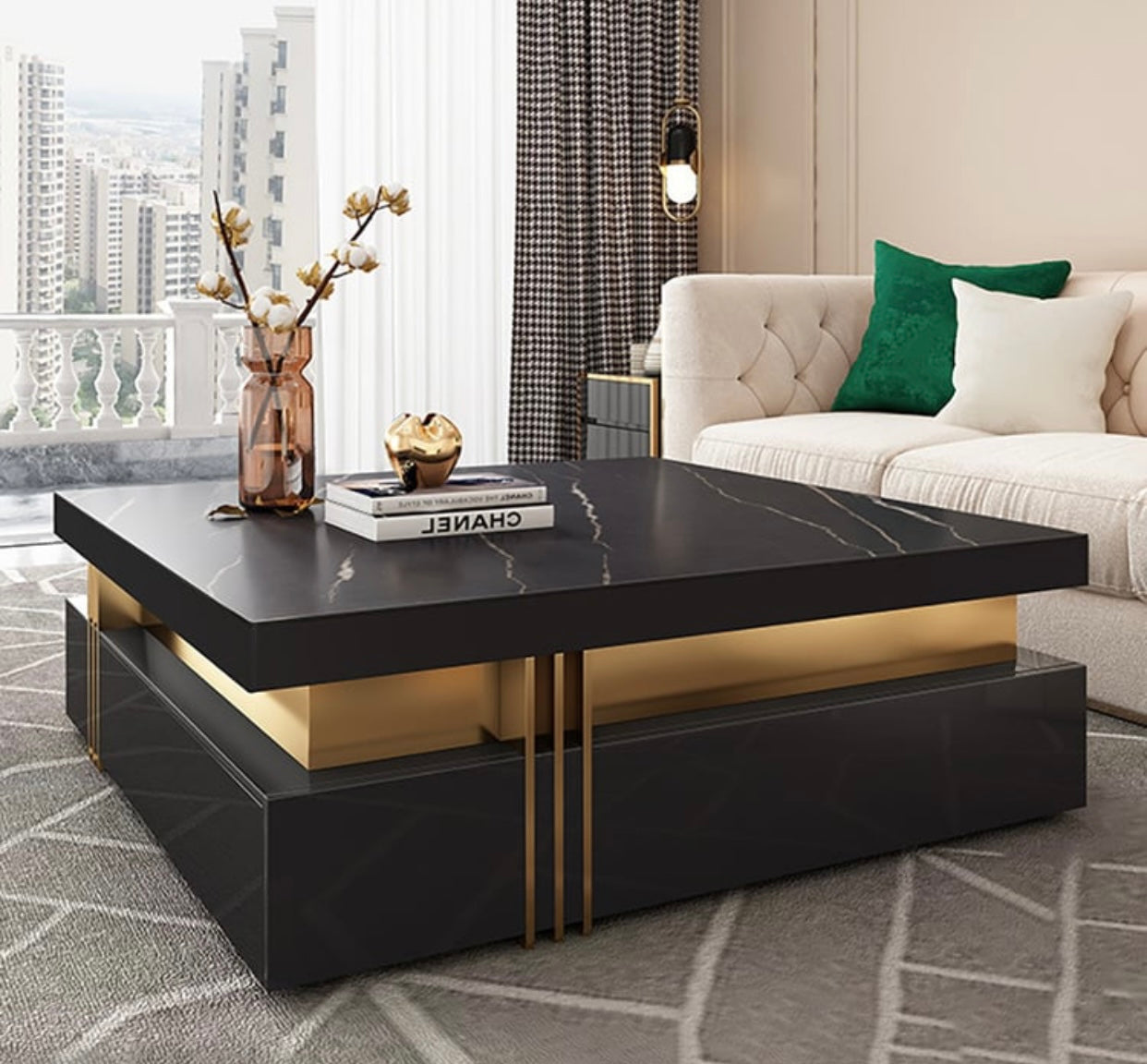 Introducing the Slidell Coffee Tables - a stylish yet functional addition to your living space. Crafted from durable and sleek MDF with a Duco paint finish, this Black and Golden center table is the perfect blend of modern design and practicality. Check out the last picture for size specifications.